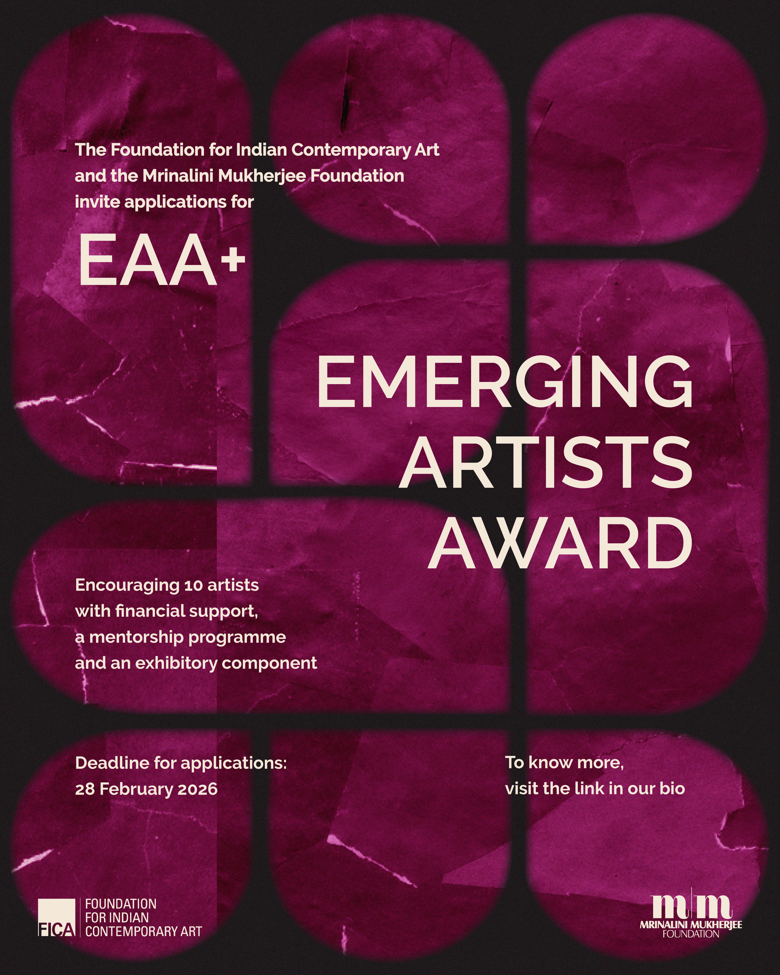 The Foundation for Indian Contemporary Art, in collaboration with the Mrinalini Mukherjee Foundation invites applications for the Emerging Artists Award (EAA+), a collective forum that will support 10 art practitioners through a financial grant of Rs 100,000 each, a mentorship programme and an exhibitory component.